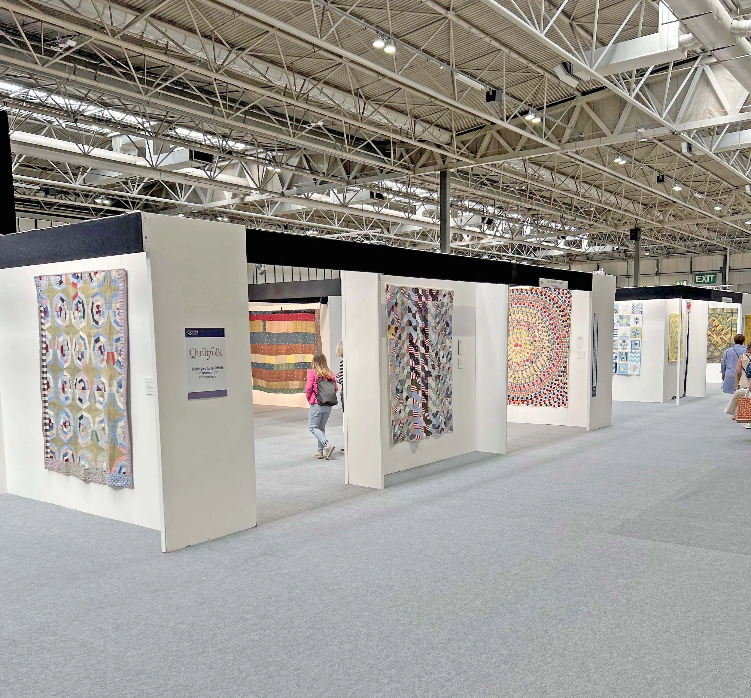 From left to right: Grandmothers Flower Garden, Bars / Original Design (“Pegasus”), and One Patch, var. just behind Crazy Log Cabin, var.